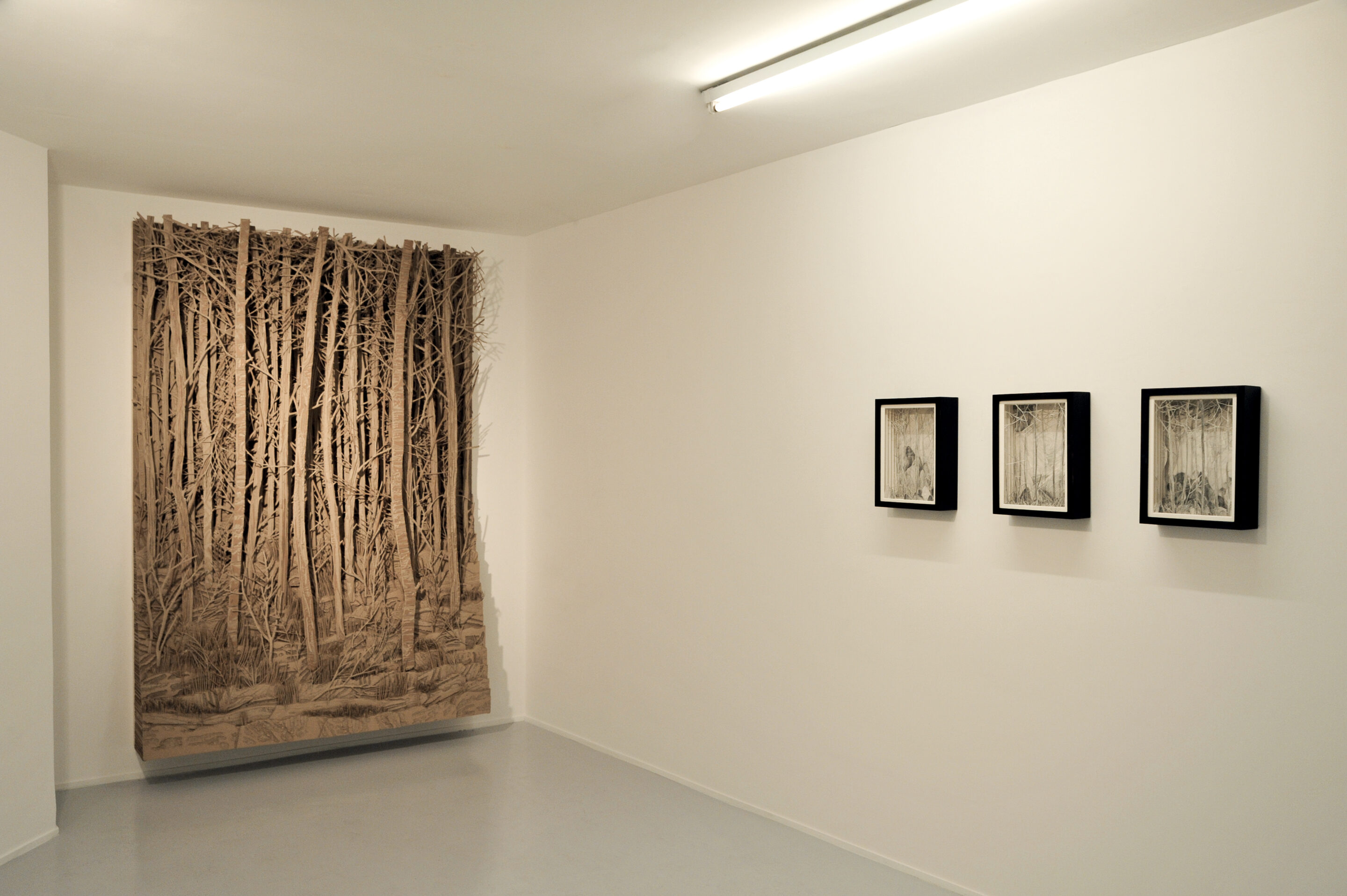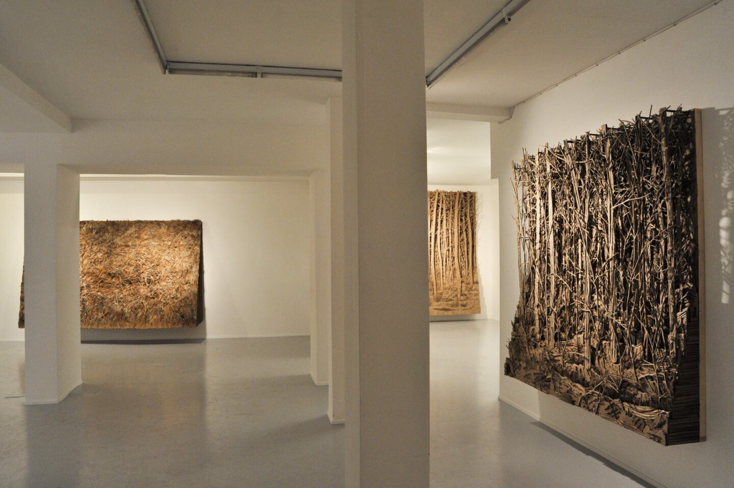 Similar to the decor of a long-forgotten dream, Eva Jospin’s works possess a singular power of suggestion. Alone facing these forests, the viewer cannot help but let his mind wander. Such is the case with forests in which we, literally, lose ourselves. The ambiguity of these works, inspired as much by classical landscape painting, as by land art, resides, among others, in their plural identity: at the same time a painting, a sculpture, a high relief… To look at each new creation by the artist is just as visual as it is immersive. Beyond this sensory experience, these works also function as a screen on which everyone is likely to project his/her own interpretation: isn’t the forest a place of infinite possibilities? In any case, this is what fairy tales have taught us.