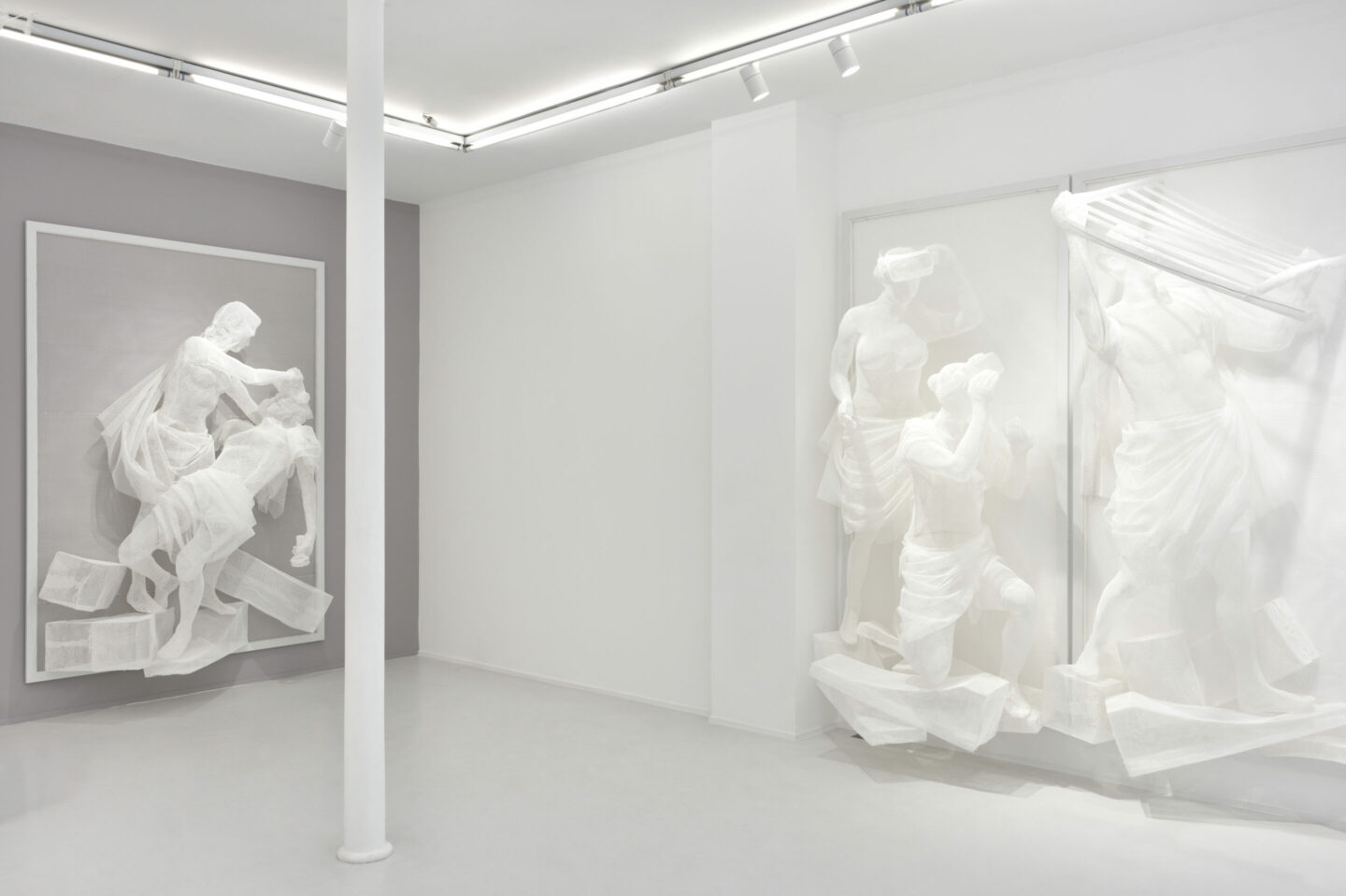 Pieta, 2023 Grillage plastique thermoformé, métal / Thermoshaped plastic mesh 240 x 170 cm (94 1/2 x 66 7/8 in.)
