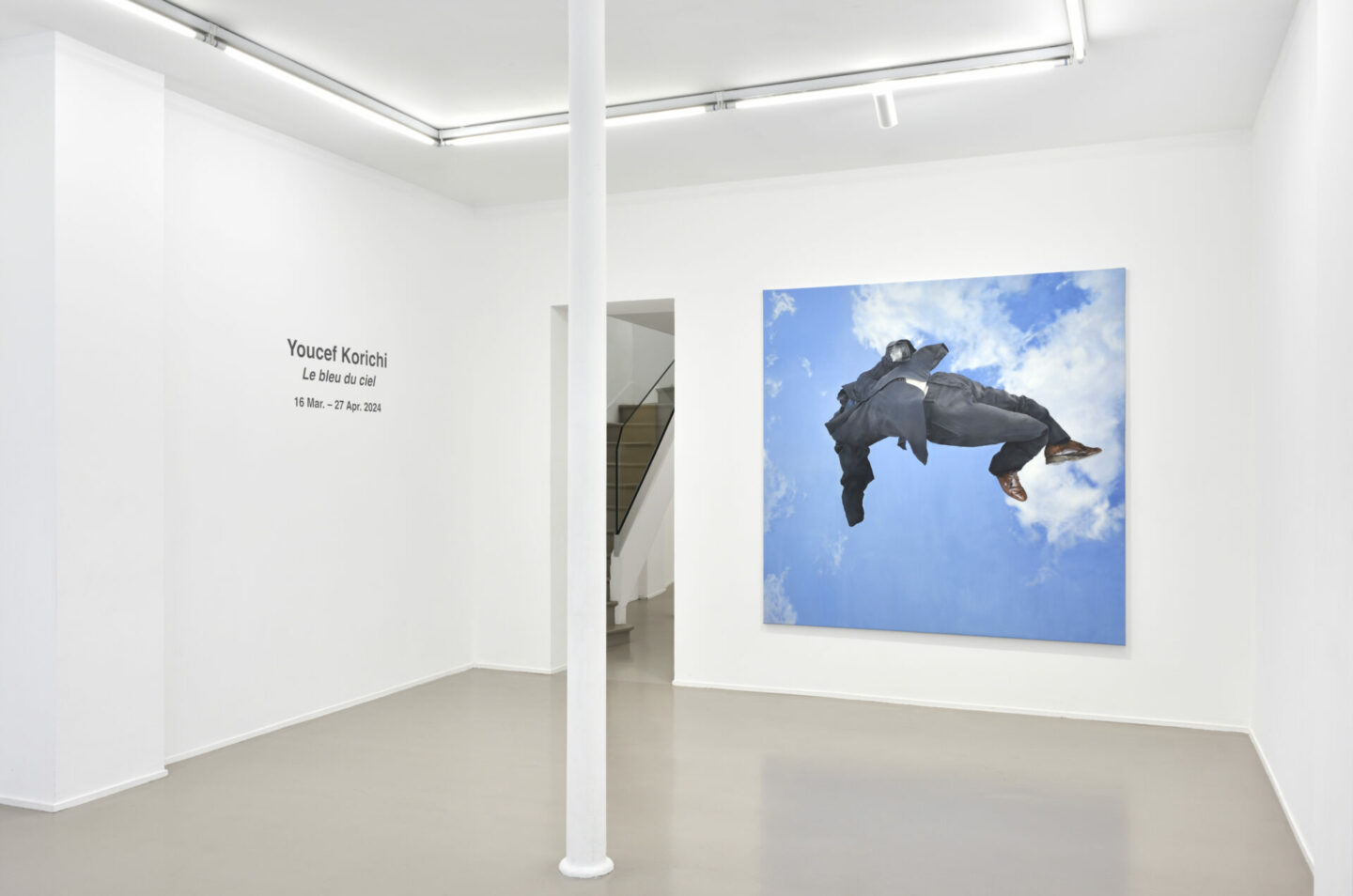 Youcef Korichi knows a lot about art history and literature, about how to create a classic painting, as can be seen in his new series, in which he pays homage to the work of three important creators. One source is Francisco Goya—his painting, but also his critical view of the world. The series Le bleu du ciel (sky blue) evokes Goya and his ragdoll El Pelele , painted in 1792 for Spain’s King Charles IV. Goya’s canvas was a departure from academic convention, a strike against the established order, a break. The puppet, a carnivalesque figure par excellence, is by its very nature disjointed.
