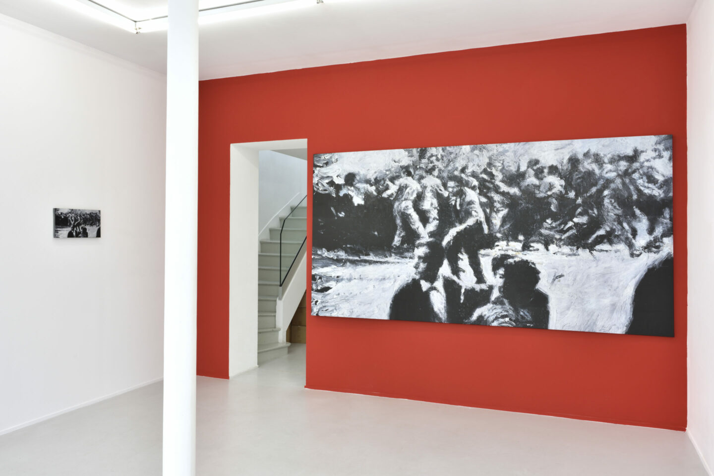 Sans titre #2 (Michael Heizer Circular Planar Displacement Dry Lake, Nevada 1970, photo Gianfranco Gorgoni, copyright Maya Gorgoni), 2020 Huile sur toile / Oil on canvas 230 x 130 cm (90 1/2 x 51 1/8 in.) Photo : Rebecca Fanuele