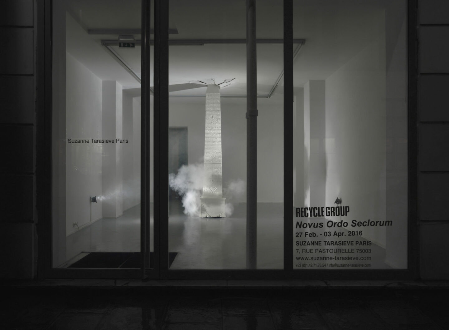 Luxor antenna, 2016 Polystyrène, plastique, machine à fumée / Styrofoam, plastic cover, smoke machine 300 x 60 x 60 cm (118 1/8 x 23 5/8 x 23 5/8 in.)