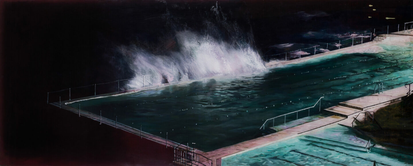The Divers, 2019 Huile sur plexiglas / Oil on plexiglass 45 x 86 cm (17 3/4 x 33 7/8 in.)