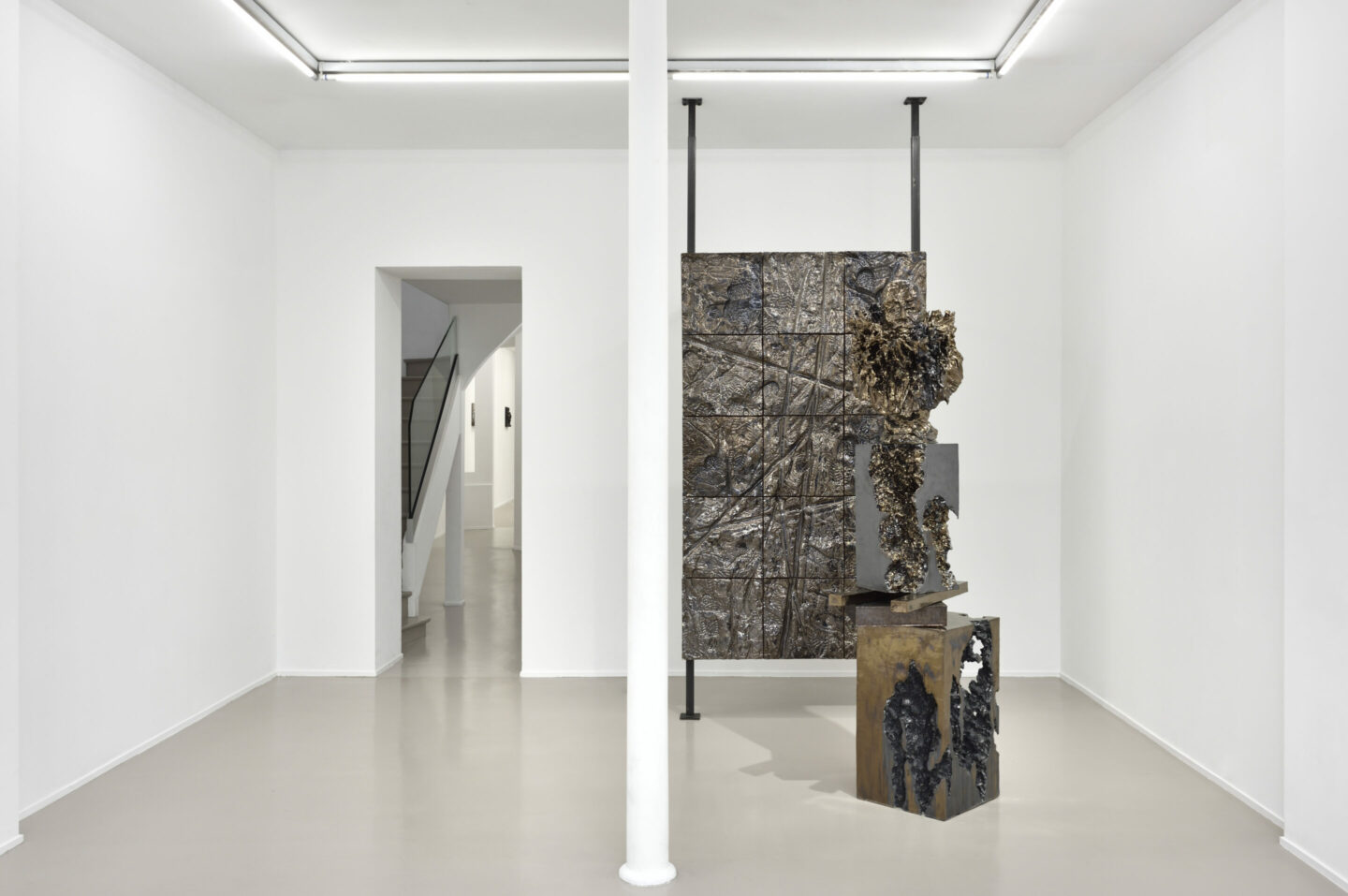 For her fourth exhibition at Galerie Suzanne Tarasieve, Anne Wenzel continues her exploration of the disintegration of symbols of power. She aims to recreate monuments in a vocabulary that may at first appear classical—busts, bas-reliefs, still lifes, bouquets of flowers. But rather than elevate or sanctify their subjects, her monuments’ verticality is in decline, aiming for the ground.
