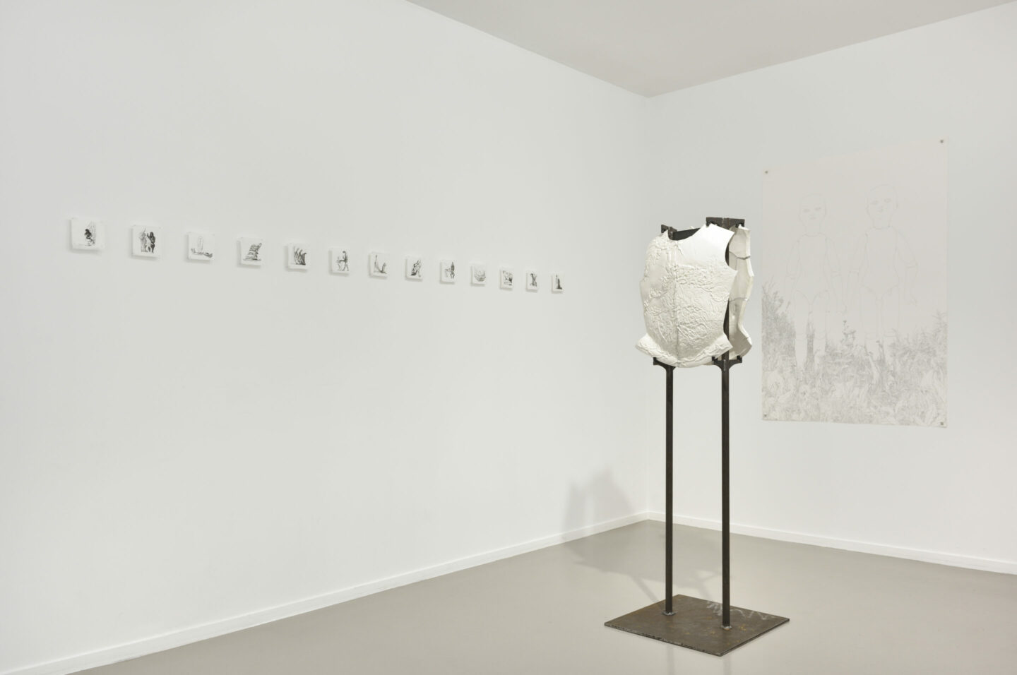 Her delicate works, inks on paper or ceramics, are freely inspired by medieval aesthetics, conjuring up a pre-modern imagination imbued with spirituality, mysticism and collective struggles. In her images, the body – its wounds, its healing and its scars – occupies a central place, and the memory of the suffering experienced rubs shoulders with that of possible healing.